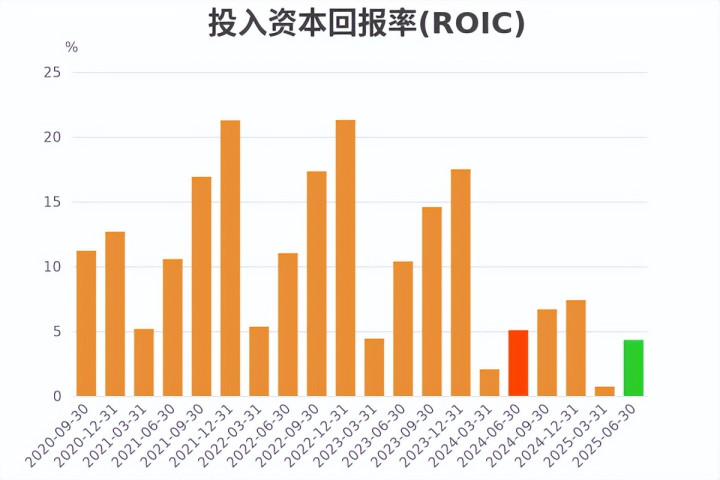 紫光国微(002049)2025年中报报告显示,本报告期投入资本回报率(ROIC)4.32%,同比有所下降。